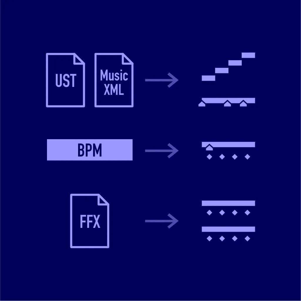 ボーカロイドや合成音声ソフトなどから書き出したMusicXMLまたはUSTファイルから、音楽に合わせた文字レイヤーを生成