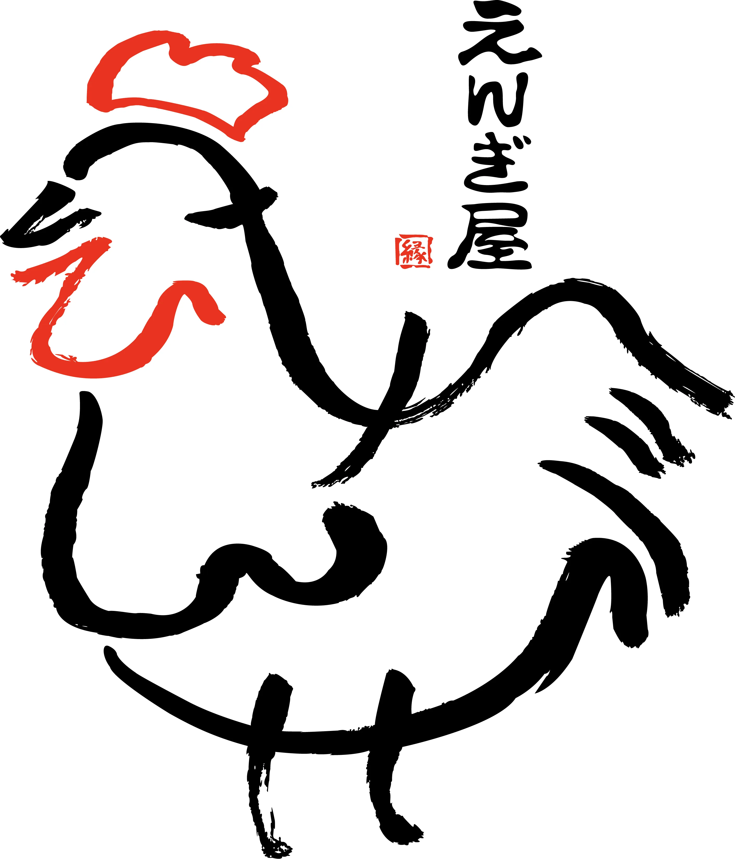 「えんぎや」のひらがなを組み合わせて、えんぎ屋様の定番メニューである焼き鳥の「にわとり」を表現しました。